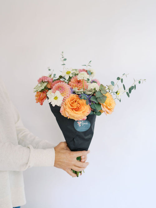 Our photos will give you a basic idea of size and aesthetic for every arrangement but please know that each order is customized based on seasonal availability and any directions given in your order notes.