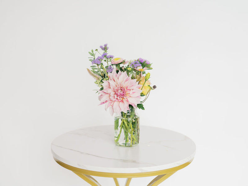 All of the flowers and greens will be cut ahead of time for you so that you can dig into learning and practicing basic arranging techniques during this class. We will demo how to build your design and you will get to try your hand at it as well creating your own arrangement in a glass vase to take home with you and display proudly!